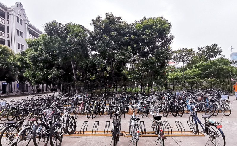 自2020年9月,由团总支组织开展劳动教育之自行车停放管理活动,活动期间由各团支部安排人员在每天上午、下午的课间和中午放学时负责引导位于芙蓉1-4宿舍门口和院楼黄朝阳楼北门的自行车规范停放和整理。