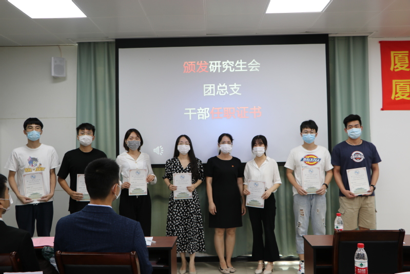 在信息学院第一届研究生团总支任满之际,龙坚毅副书记为第一届研究生团总支干部颁发了任职证书。