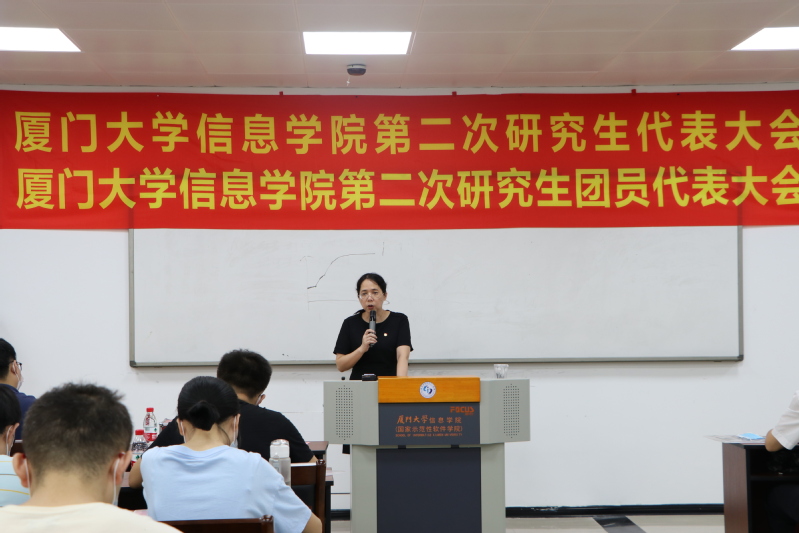 2020年9月4日,厦门大学信息学院第二次团员代表大会在海韵园行政楼A201顺利召开,出席此次大会的有院党委副书记龙坚毅,院团委副书记黄艺明,辅导员蔡婧蓉,信息学院第一届研究生团总支委员,其他院系研究生团总支代表和全院各系各年级的学生团员代表等。