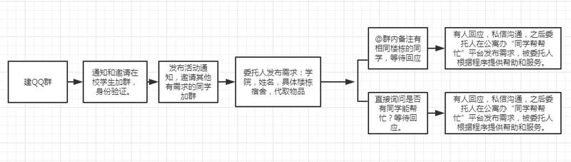 为此,信息学院(国家示范性软件学院)青协发起了一个问卷调查,发现确实有相当一部分同学无法找到合适的委托人。很快,学院青协就在院内发起和创建了“同学帮帮忙”QQ群,同学们可以通过这个群找倒合适的在校同学代为进入宿舍取物。这个群里的成员以备注【帮帮我】和【我帮你】的形式(如【帮帮我】-映雪3,【我帮你】-海韵17)区分校内校外的身份,方便大家联系。