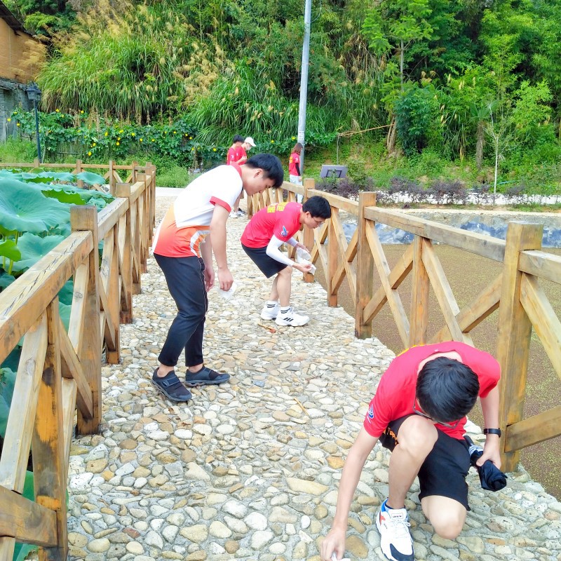 当抵达泮洋乡后路村,队员们发现荷塘中荷花朵朵,而塘边的垃圾则有些煞风景。队员们主动在荷塘周边开展了清理垃圾活动,体会环卫工人的辛苦,积极响应美丽乡村建设。