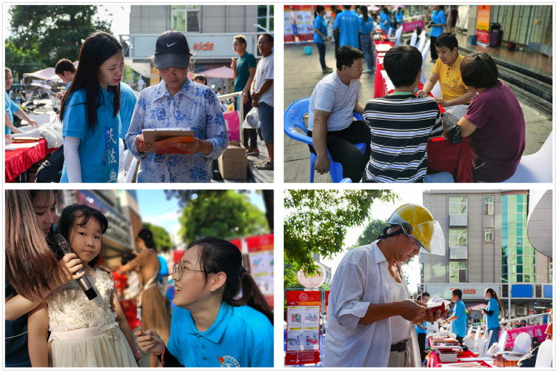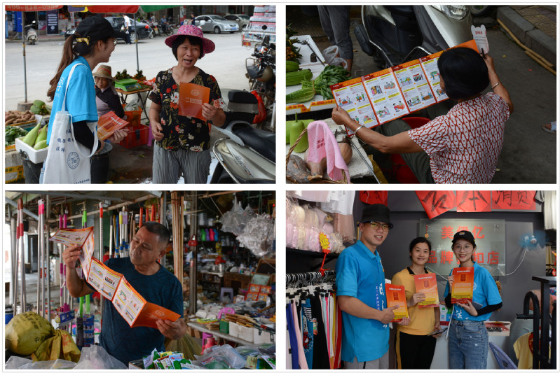 7月30日、31日,“典”入民心实践队选择了在诏安县城的闹市地段恒晟超市门前、太平镇农贸市场举行了两场民法典路演宣讲活动。队员们在喧闹的街头架起民法典宣传易拉宝、搭起民法典许愿墙、摆出为当地群众精心准备的普法主题纪念品,通过向民众们分发宣传册和纪念品、开展主题游戏、进行法律咨询、组织问卷调查等多种方式进行普法宣传,耐心地向民众们讲述民法典的立法背景、主要内容及时代价值,并就群众关心的法律问题进行了调研和答疑。宣讲过程中,实践队还吸纳了一名“新成员”——即将于今年九月入学厦大法学院的2020级硕士研究生新生许秀洁。听闻实践队宣讲活动走进诏安,作为准厦大学子的她马上赶到活动现场进行支援,“很开心能在自己的家乡和老师同学们一起宣传民法典,对我而言,这是一次非常宝贵的学习实践经历,今后我将继续努力,用学习到的法律专业知识报答回馈家乡!”许秀洁激动地对实践队员们说道。为期两天的路演宣讲让“民法典”这个词在诏安人民的脑海中由陌生变得熟悉,民众们对于民法典关于坚持主体平等、保护财产权利、便利交易流转、维护人格尊严、促进家庭和谐、追究侵权责任等要求有了基本的认知,也逐渐认识到,民法典既是保护自身权益的法典,也是全体社会成员都必须遵循的规范。