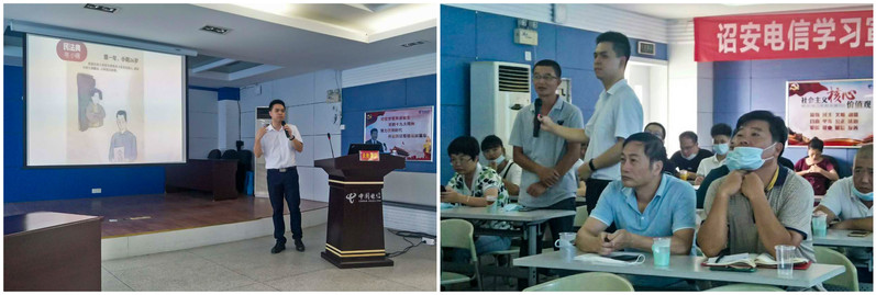 7月31日下午,实践队校外指导教师、福建天衡联合律师事务所律师吴莹淋在诏安县电信局作“民法典热点问题与通信法律实务探讨”专题讲座。吴律师以“民法典与小明”的故事为引,通过生动的案例讲授,对民法典的立法经过、主要内容以及一系列通信法律实务热点问题进行分析研讨,深刻阐述民法典蕴含的法治规则和精神内涵,为电信局在以后的工作中更好地服务群众提供法律支撑。