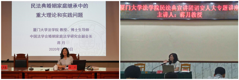 在实践队路演宣讲如火如荼开展的同时,实践队专业指导教师、厦门大学法学院民法典宣讲团专家成员蒋月教授于7月30日、31日先后赴诏安县人民法院、诏安县人大,以“民法典婚姻家庭继承中的重大理论和实践问题”和“精准把握民法典要义,切实保障民法典实施”为题进行授课宣讲。蒋月教授通过专业的理论阐述和详实的案例分析,向与会人员生动诠释了民法典的条文精髓和立法精神,她深入浅出、全面系统的分析和讲解为与会人员在以后的实际工作中扎实做好民法典学习贯彻实施工作提供了有力指导。