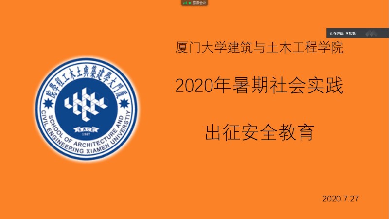 7月27日,建筑与土木工程学院暑期社会实践出征安全教育大会云上举行。学院团委书记李加冕、实践部负责人与工作人员,所有实践队队长参加了活动。