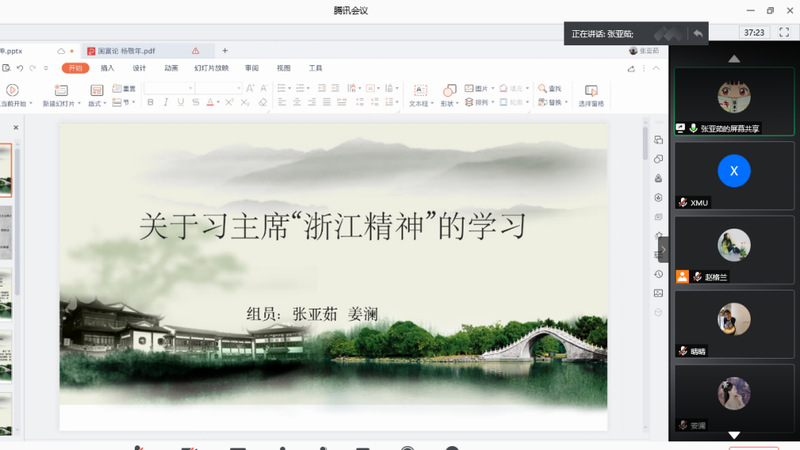 7月12日,第九期集体学习如期展开,主讲人张亚茹以《习书记给我们讲述“浙江精神”》一文为中心,生动讲述了习近平总书记对大学生的谆谆教诲。习近平总书记嘱咐大学生们,要学习浙江精神、感悟浙江精神、实践浙江精神、弘扬浙江精神,干在实处,走在前列,要成为“浙江精神的继承者和创者”。通过学习,支部党员反响热烈。同志们结合自己的生活和学习实践,积极践行着习近平总书记所提到的“浙江精神“的内涵。岳韵竹同志认为:“要积极走进社会,走向基层。不仅要读好课堂上的书,也要读好社会这本‘书’”。马锋同则认为:“要了解浙江,热爱浙江,进而了解我们伟大的祖国和伟大的民族,激发起应有的爱国主义精神和民族自信心”。