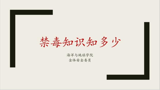 为深入学习,准确把握和全面贯彻落实习近平总书记的重要讲话精神,深入推进毒品预防宣传教育,推广普及禁毒知识,提高学生的识毒、防毒、拒毒意识,营造禁毒的浓厚氛围,海洋与地球学院团委积极响应学校号召,推出普及禁毒知识相关推送2篇,并于2020年7月5日,在线上成功举办了“禁毒知识知多少”禁毒教育主题学习活动。海洋与地球学院全体安全委员及生活服务中心成员共同参与。