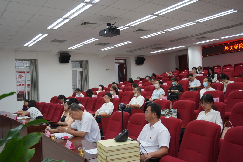 7月2日下午,外文学院在南光三112报告厅举办“党旗飘扬 筑牢红色防火墙”战“疫”示范微党课,作为外文学院庆祝中国共产党成立99周年的系列活动之一。校党委组织部副部长乔连全,校基层党建工作联络员黄定基应邀出席。活动由院党委副书记杨云良主持。