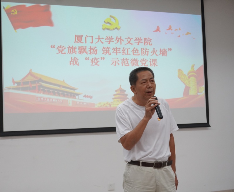 3位外文学院师生党支部书记(副书记)和1位特别邀请的厦门大学“扬才计划”学员分别分享了自己的战“疫”微党课,生动讲述了自己和身边的战“疫”故事。