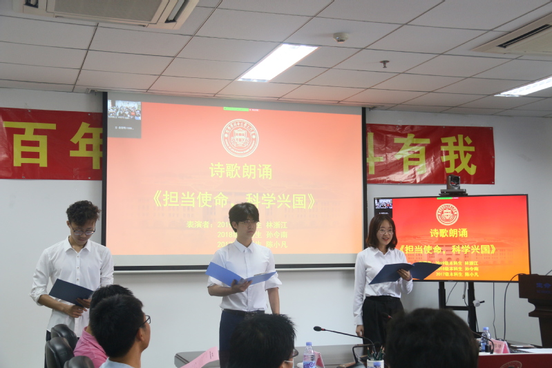 不忘初心,扬帆起航。生命科学学院主持队的同学们以《担当使命,科学兴国》为主题进行诗朗诵送别毕业生。