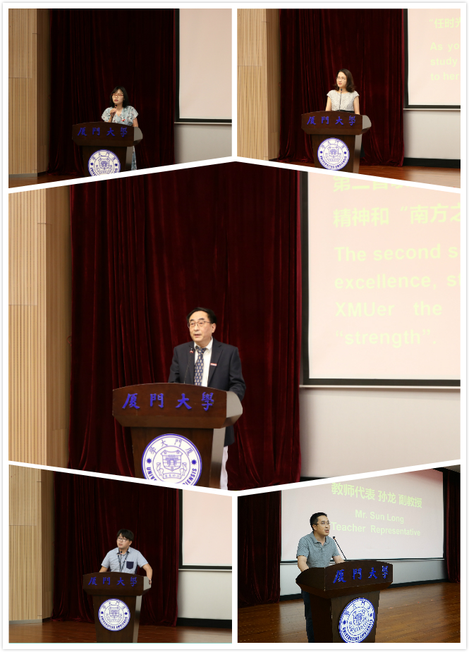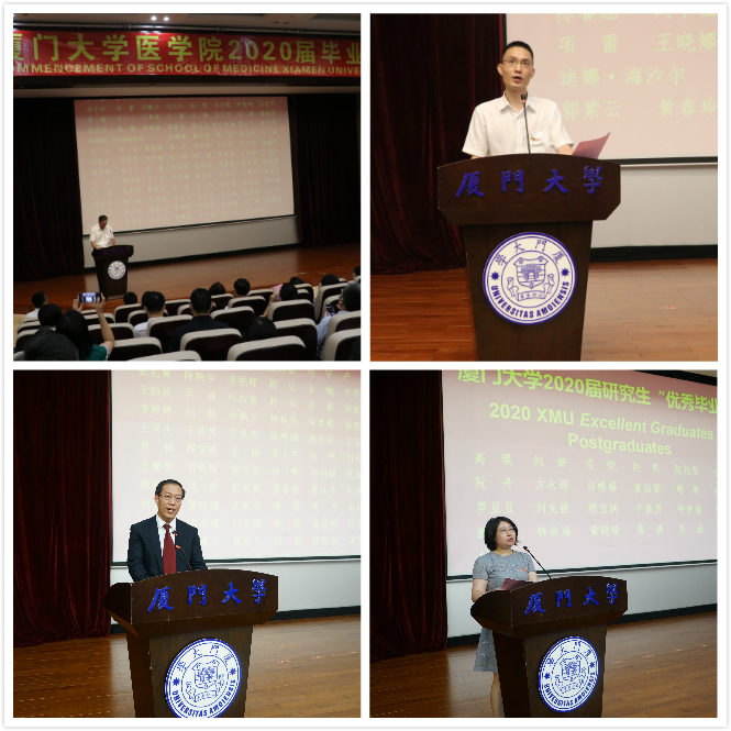 邓小玲副教授寄语本科毕业生,她希望同学们学会“守恒与变通”,不忘初心,牢记使命;陈兰助理教授呼吁同学们要珍惜生命,永葆医者仁心,践行“敬佑生命、救死扶伤、甘于奉献、大爱无疆”的职业精神;许韧教授为研究生毕业生送上祝福,他希望同学们胸怀厦大之志,将嘉庚精神融入到各自的工作学习中;孙龙副教授围绕终身学习、团队精神、脚踏实地三个词展开,号召同学们争做靠谱的人。