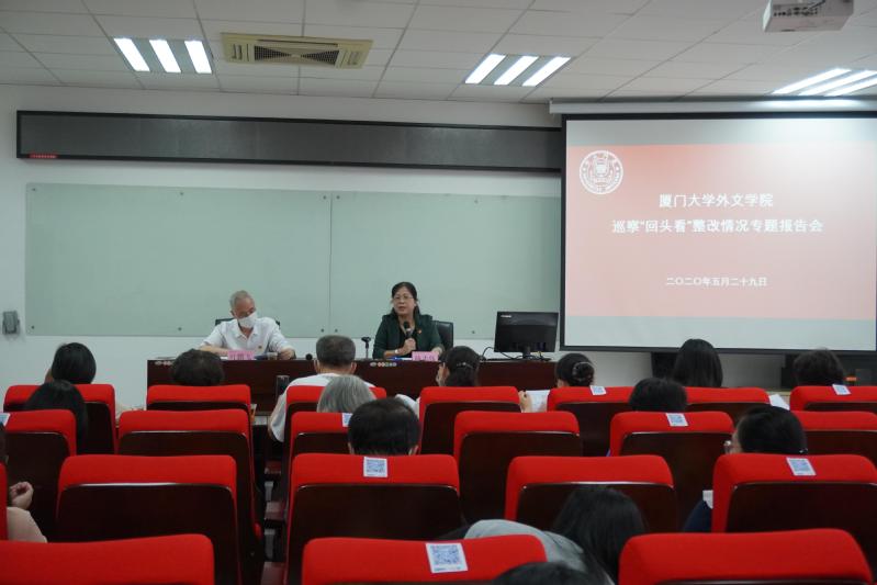 根据校党委第二轮巡察“回头看”工作的统一部署,5月29日上午,“回头看”第一巡察组在德贞楼313听取我院巡察“回头看”整改情况专题汇报。“回头看”第一巡察组组长叶鹏飞,成员廖志丹、黄艳萍、董佳闻,校基层党建工作联络员黄定基出席大会。学院党政领导班子成员,系所中心负责人,工会主席,院办主任,团委书记,妇委会主任,教工和学生党支部书记参加此次报告会。