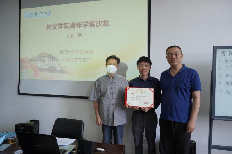 5月25日下午,厦门大学外文学院第三期青年学者沙龙活动于德贞楼319会议室顺利举行。学院青年教师黄若泽应邀担任本次活动主讲人,胡兆云担教授任点评嘉宾。杨士焯教授主持活动并为黄若泽老师颁发证书。