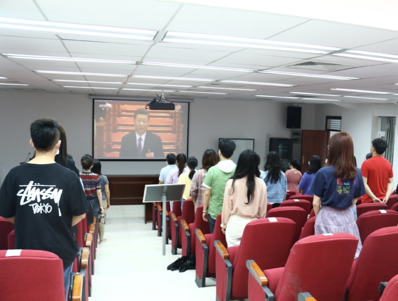 5月22日上午,十三届全国人大三次会议在北京人民大会堂开幕,国务院总理李克强作政府工作报告。外文学院党委书记陈志伟,党委副书记杨云良,副院长李美华、吴光辉和师生代表在南光三112报告厅集中收看大会开幕盛况,第一时间了解政府工作报告内容。