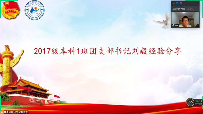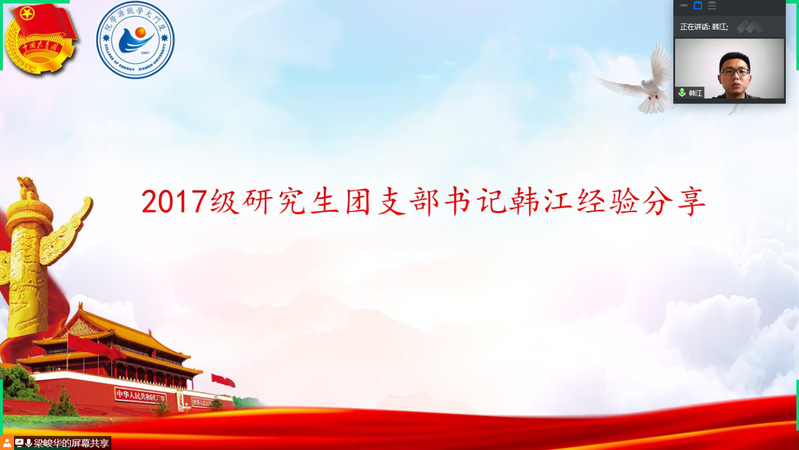 随后,韩江为大家分享自己的观点。他认为在完成每次例行工作的基础上,还应该深究每次学习、活动的意义,做好传达者和组织者的工作。其次,团课后应注意收集团员们的思想感受,这不仅能督促团员们认真学习,也能帮助团员们回顾凝练知识。此外,他还建议团支书们用好“智慧团建”模块,他认为“智慧团建”既是开展团课获取灵感的媒介,又是每次团日活动的记录载体,能显著提升团的工作的开展效率。