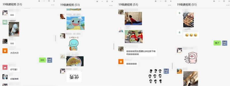 19级本科建筑班心理委员带领同学们分享在家上网课的一些小趣事。既有“上网课忘记关麦”的糗事,又有“上课时能和父母在一起”的温馨。班里发起了疫情期间心理调查的匿名投票,统计后发现大部分同学对网上教学适应得比较好。个别同学因为家里的上网课条件不太好,家庭环境较为吵闹,有时心情较为烦躁、焦虑。为了进一步让同学们放松,班委组建了线上游戏群,组织了几轮“你画我猜”和“狼人杀”的线上游戏。通过游戏,同学们连麦畅聊,紧张的心情得到了很好的缓解。