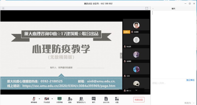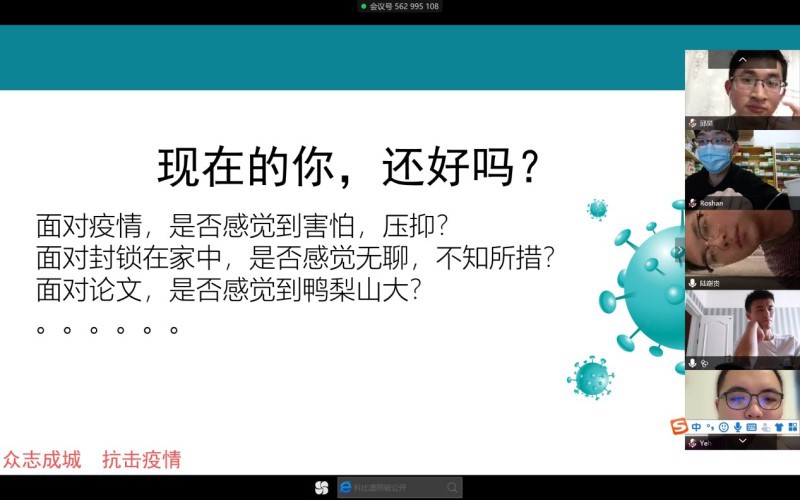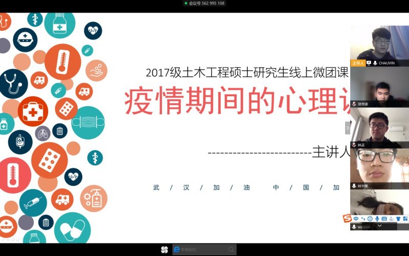 16级本科建筑班开展了以心理健康线上主题团日活动。心理委员利用自己在培训中学到的知识对大家展开辅导,怎样克服失眠、怎样缓解焦虑、怎样提高效率。为增强防疫信心、普及防疫知识,全班一起观看了影片《流感》,活动在电影的尾声中结束,影片同学们的思考却还在延续。