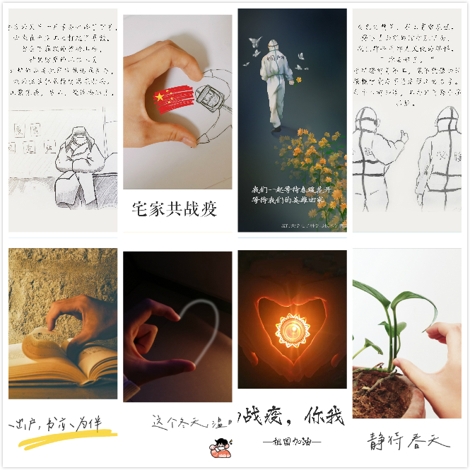 “云创作”是电子青年声援抗疫一线的具体举措。新型冠状病毒感染疫情是一场没有硝烟的硬仗,有的人在一线奋战,有的人在岗位坚守···学院号召学生要养成守望相助的情怀,通过不同的创作形式驰援前线抗疫工作。学院开展了“共抗疫情、爱国力行”主题网络文化创作和中国战‘疫’”主题征文活动,征集到作品134件;学院网络文化工作室创作了文字、漫画、视频、H5等系列抗疫作品,推出了电子学院“防疫一线活雷锋”、“电子抗疫故事”等系列推送。通过网络文化作品创作,宣传抗疫工作先进典型,讲述扣人心弦的抗疫故事,弘扬众志成城、共克时艰的人间大爱,让学生既能体验作品创作之美,又能体悟世间真善之美。
