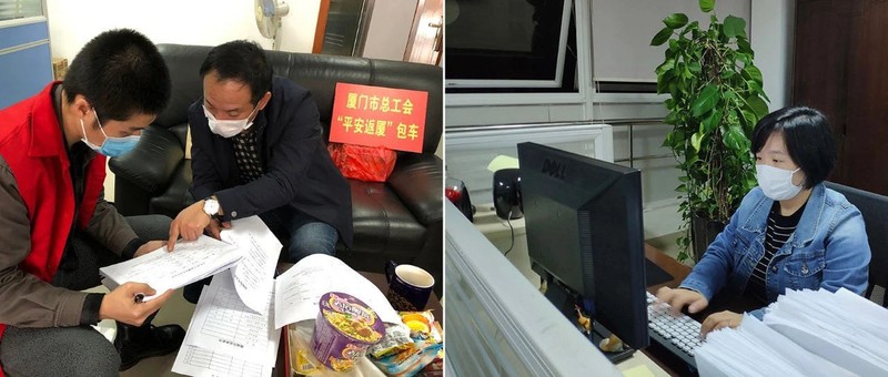 纪力行副部长介绍了厦门市总工会在防控疫情过程中,为了落实“一手抓防疫,一手抓发展”的要求,全力协助企业复工复产的经验做法。她介绍了总工会通过“包车、包列、包机”等措施,与企业进行“点对点”无缝对接,保证将企业职工安全地送返企业,所有工作人员夜以继日、主动靠前、辛勤付出,让师生们深受感动。