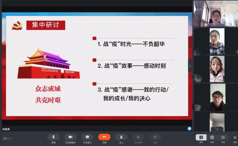 随后,支部成员围绕战“疫”时光——不负韶华、战“疫”故事——感动时刻和战“疫”感想——我的感悟三个方面进行了集中研讨,大家分享所见所闻,表达了自己的感想和感动。