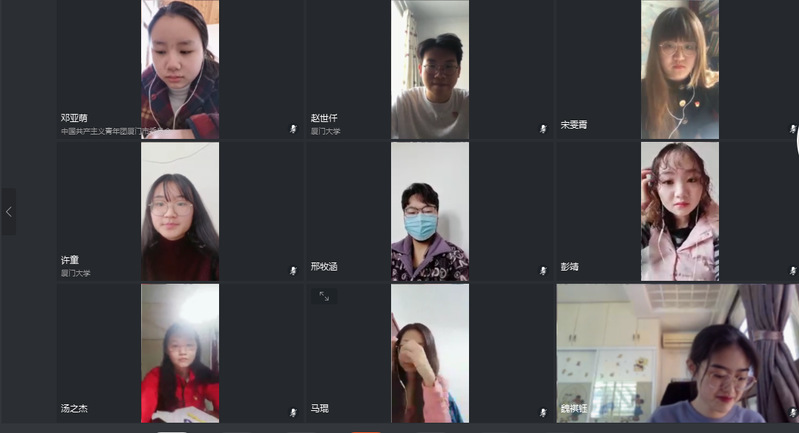 支部的彭靖同志身处疫情最为严重的湖北地区,大家都对她表达了关心和问候。她向大家讲述了近况并分享了自己参与学校组织的“战疫无忧”云辅导爱心志愿活动,为厦门驰援武汉医护子女提供线上课业辅导的经历。她谈到:“疫情期间,我收到了多次来自学校、学院的关心,还收到了慰问信和防疫物资,让我感到特别温暖。虽身处封城封路的疫区,但我希望通过参与线上辅导,为一线医护人员解决后顾之忧,将这份温暖传递下去!”