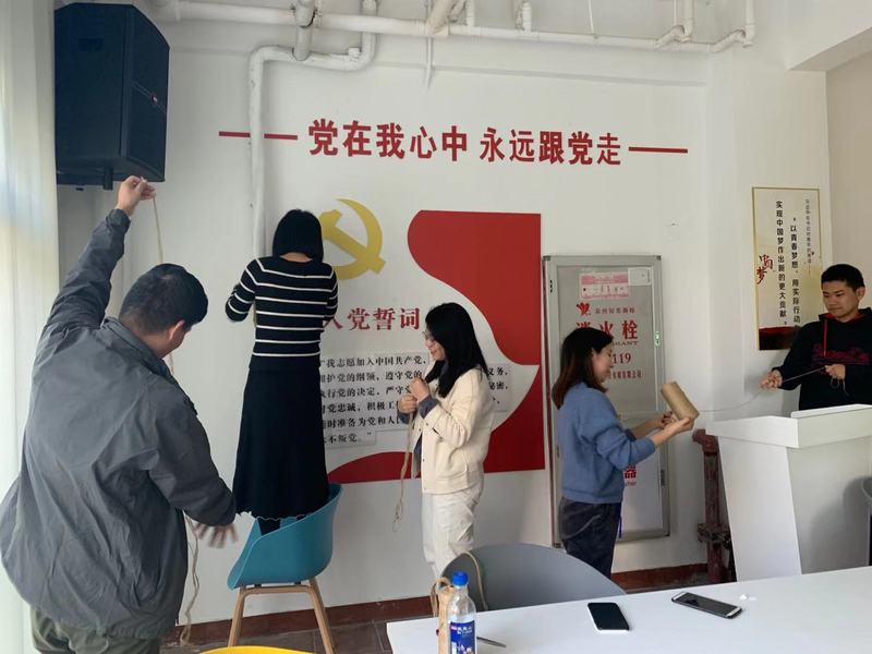 党建引领是培养青年学生的最重要工作,党团活动室就是把党建工作落实到最基层,把学生党支部、团总支建在学生宿舍区,为学生和支部活动提供团队活动空间,开展样板支部创建和党团系列活动,形成“一个党员一面旗帜、一个支部一座堡垒”的良好示范引领作用。要党建引领,就要把鲜红的旗帜亮在眼前。辅导员郭慧玲很快就设计出党团活动室的装饰初稿。