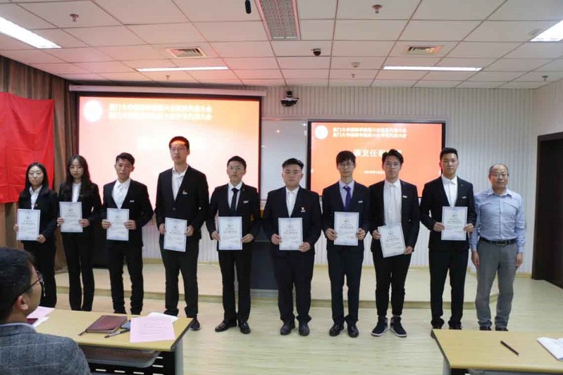 马兆海副书记颁发第五届团总支、学生会和宣传中心委员任职证书。