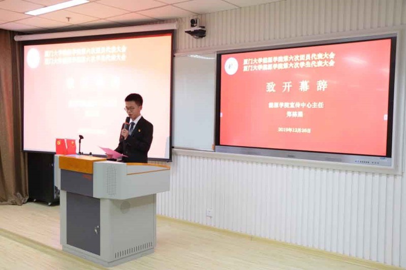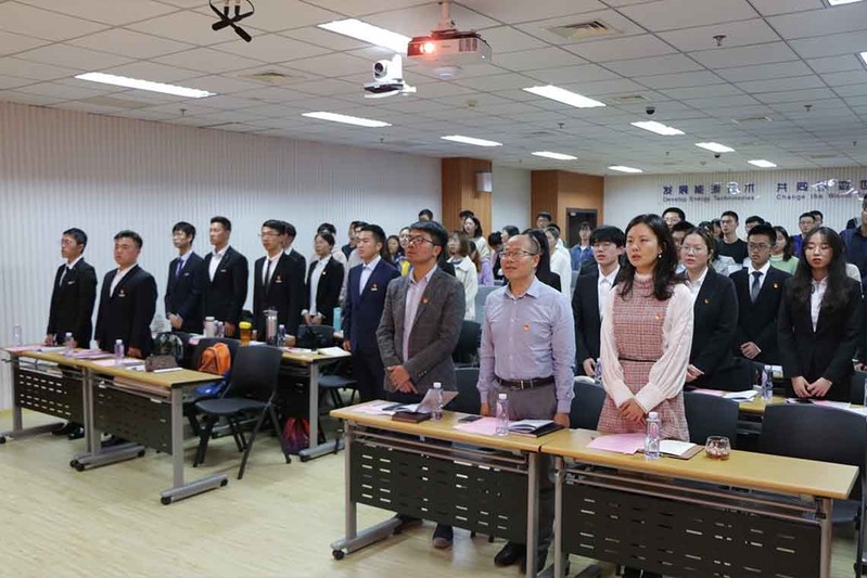 大会正式开始,主持人宣布能源学院第六次团员代表大会开幕,出席本次大会的全体成员起立奏唱中华人民共和国国歌。