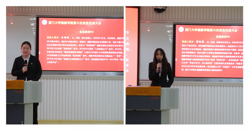 随后,能源学院第六届团总支委员候选人分别上台竞选。2017级本科生邓翊、2018级本科生刘松松、2018级本科生李业琳、2018级本科生刘晓芸、2018级本科生吴林琪、2017级本科生梁钰莉,分别上台作竞选演讲,他们都表达了自己对学生工作以及对部门温暖的大家庭的热爱,回忆了自己在过去几年内在学生工作过程中学到的知识与技能,明确自己将不忘初心、尽职尽责的做好未来的学生工作。