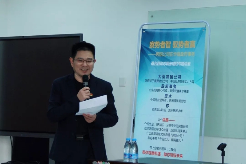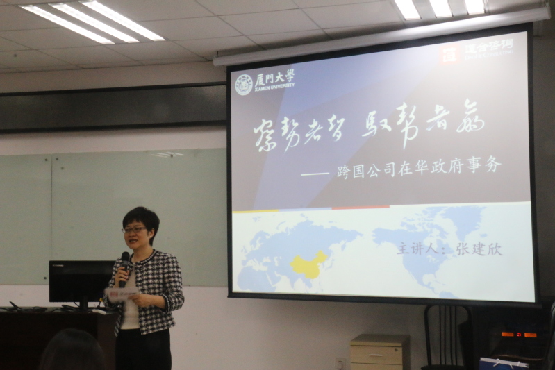大型跨国公司一直以来都是外语类人才的重要就业方向,而政府事务作为此类企业战略核心构成部门,发展前景良好。讲座中,张建欣女士首先从政府事务的起源谈起,将这一行业的发展故事娓娓道来,并详细介绍了改革开放后,政府事务作为舶来品被引入中国的过程及如今这一行业的发展状况及前景。据介绍,改革开放后,中国发展水平日新月异,跨国公司日渐增多,政府事务行业也顺势发展起来。其最初的行业雏形仅仅是从事帮助外国企业办理入驻中国的政府特批等简单事务,而如今,伴随着中国经济追求高质量发展的新形势,跨国公司面临新政策出台、中国企业崛起等一系列重大考验,营商环境的改变与一成不变的营商思维正产生着深刻的矛盾,更加成熟规范的行业标准、更加深刻复杂的新任务在政府事务领域也应运而生。