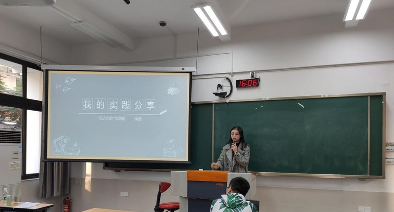 财政系的余郄学姐作为曾获得“调研中国青年领导力公益平台年度十强”、“青年中国行全国百强团队”等荣誉的“无人问经”暑期社会实践队的成员,介绍了其实践队的基本情况、实践地点、时间策划书、团建等内容,同时也展示了自己整理的各种创新创业比赛的报名时间表,让同学们对比赛有了更为清晰的认识。最后,她分享了自己在实践中有关友情、知识、能力的收获,并鼓励同学们参加比赛锻炼自我。