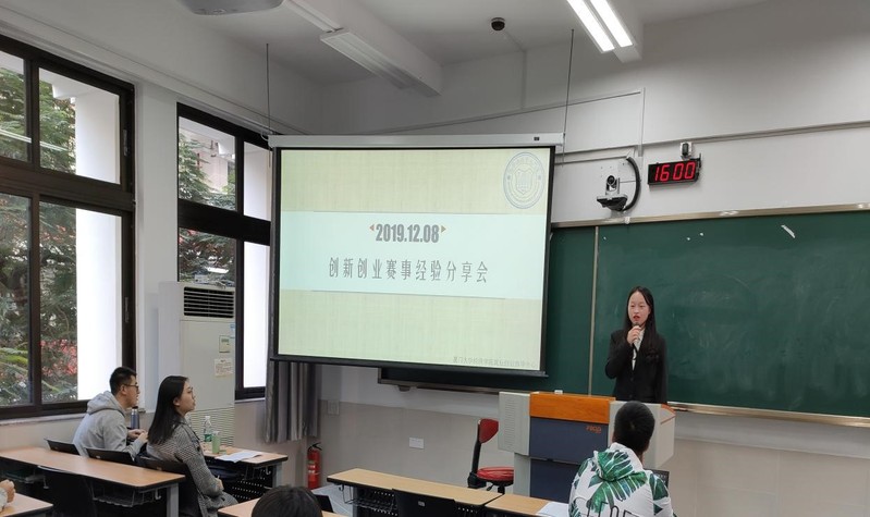 首先,主持人丁可欣向同学们分享了创新创业大赛的基本流程和注意细节并介绍了参与这次分享会的三位嘉宾。