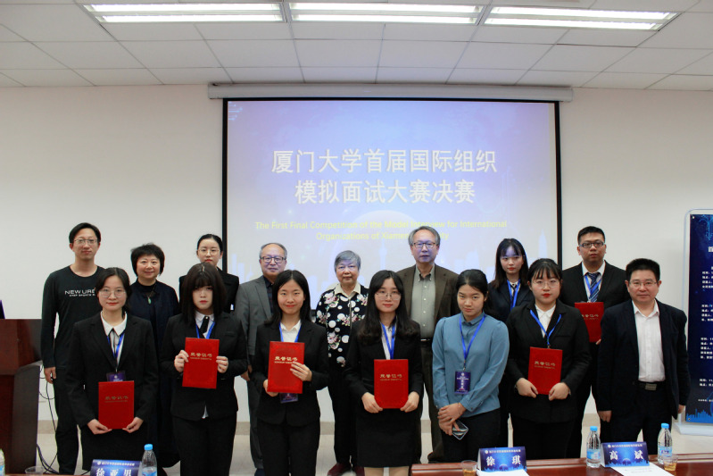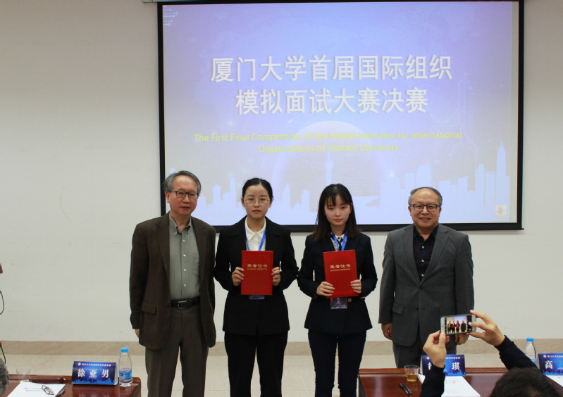 11月30日上午,厦门大学首届国际组织模拟面试大赛决赛如期开赛。徐亚男大使、李正仁教授、傅鹏辉教授应邀出席并担任评委,校学生处副处长高斌,外文学院党委副书记杨云良、副院长徐琪出席本次活动并为获奖选手颁奖。