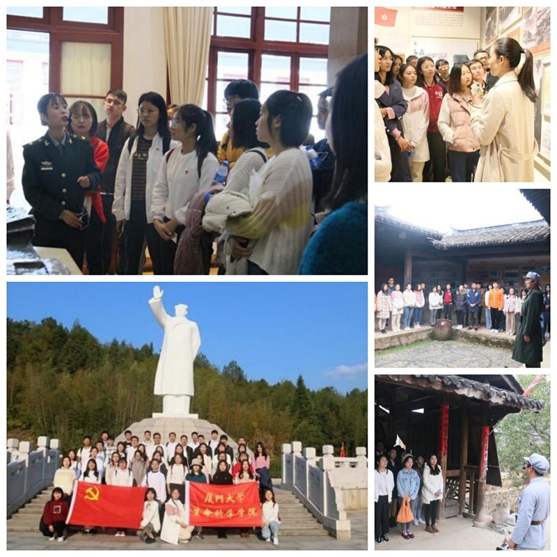 访闽西革命旧址,忆往昔峥嵘岁月,一次次的现场教学都深深地打动着学生党员,一个个壮烈的英雄事迹都激起了学生党员深沉的敬佩之情。瞻仰古田会议旧址,参观古田会议纪念馆,重温历史,传承红色基因;在毛泽东主席雕像前敬献花篮,在长汀松毛岭战斗烈士墓前献礼致敬,缅怀伟人烈士,将红色精神内化于心;重走红军桥红军街、松毛岭战役总指挥部纪念馆,听烈士后人深情讲解闽西子弟们在革命战争中的伟大信仰与奉献,党员同志们眼中闪烁着泪光亦透露坚定的信念。参观瞿秋白和杨成武将军纪念馆、苏维埃政府纪念馆,让党员同志更为深刻地理解,每一个壮士“壮志不已,鞠躬尽瘁”的高尚情怀;参观厦大长汀旧址,铭记与传承长汀时期厦大师生的家国情怀与担当精神、厦大师生艰苦奋斗的优良品格与自强不息的精神。