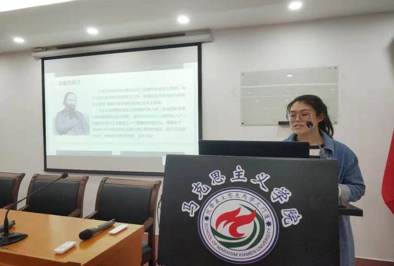 读书会伊始,由2019级硕士第二小组成员代表任雅楠同学展示读书报告,分享读书心得。任雅楠同学代表其小组就马克思《哲学的贫困》的写作背景、内容梳理作了简明扼要的分析和梳理,并发表了自己的见解。