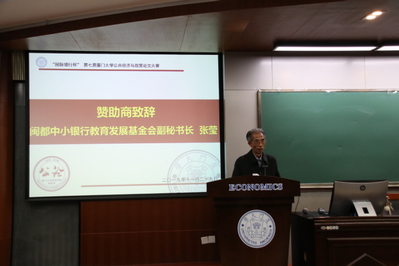 11月29日晚,“国际银行杯”第七届厦门大学公共经济与政策论文大赛在经济学院N302顺利举行。大赛由厦门大学教务处、共青团厦门大学委员会、厦门大学经济学院主办;经济学院财政系、共青团厦门大学经济学院委员会、经济学院科创中心承办;厦门国际银行赞助支持。决赛由经济学院财政系副主任刘晔、财政系谢瑞平、丁锦秀、周斯凡和陈烨担任专业评委。闽都中小银行教育发展基金会副秘书长张莹、经济学院党委副书记周蕾出席了决赛。