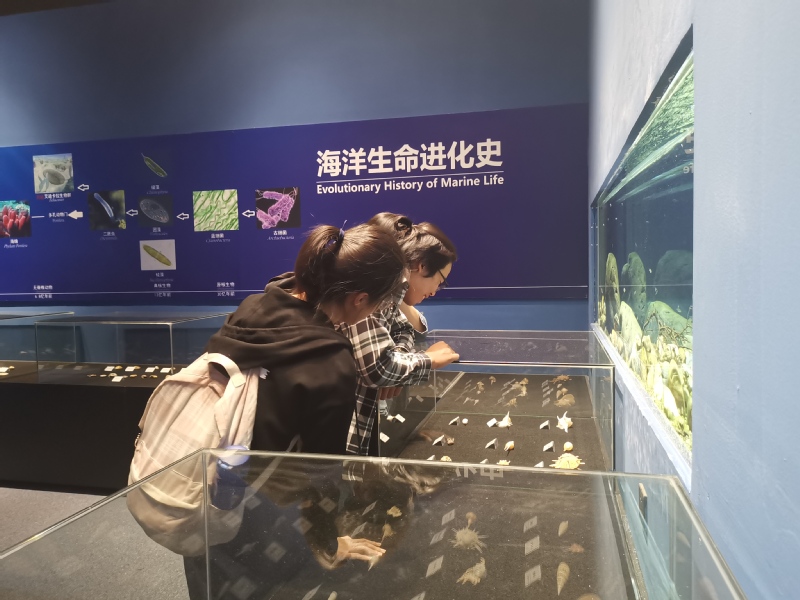 接下来,大家走进维尔海洋馆。这是一座集淡海水生态展示、海洋珍稀生物保护、海洋环保宣传、海洋知识科普、海洋高新产业交流等功能的新型综合性海洋馆,是新形势下海洋意识教育与爱国主义教育平台的探索与实践。展示区包括西沙群岛珊瑚礁生态展示、厦门水生生态展示、水草景观展示、淡水生态展示、热带红树林生态、海洋科普展示等。馆内有小丑鱼、狐狸鱼、大海星等各种海洋生物与淡水生物,还有三叶虫化石、海螺化石、头足类动物化石等等。同学们在这里将课堂上学习的理论知识与实践结合起来,拓展了思维,开拓了视野。团总支书记林姗说:“在这里感受的不再是课本中理性的海洋知识,而是海洋艺术的人文气息,海洋可以将理性与感性冲撞,充满所有的可能性!”