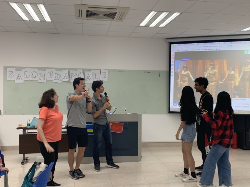 在讨论环节中,师生们共同观看一节法语幽默短片,并就“你更喜欢反映现实的电影,还是美化现实的电影”这一主题展开了讨论。在讨论期间,具旻奭同学在大家的邀请下,为大家演唱了韩国经典歌曲《Nobody》,使得法语沙龙的气氛达到了高潮。最后,在欢乐的气氛中,本届法语沙龙第一次活动圆满结束。
