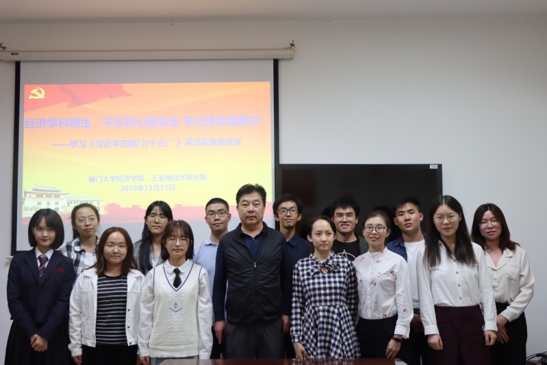 2019年11月13日下午,经济学科师生“不忘初心跟党走、牢记使命建新功——学习《习近平在厦门(十三)》”在经济楼A417会议室顺利举行。经济学院1983级院友张宏樑出席座谈会并分享与习近平同志交往的珍贵往事。院党委书记黄鸿德,院团委书记刘莉颖,副书记郑淑真、陈启妍、赵小姝,全体辅导员和学生代表参加座谈。会议由院团委书记刘莉颖主持。