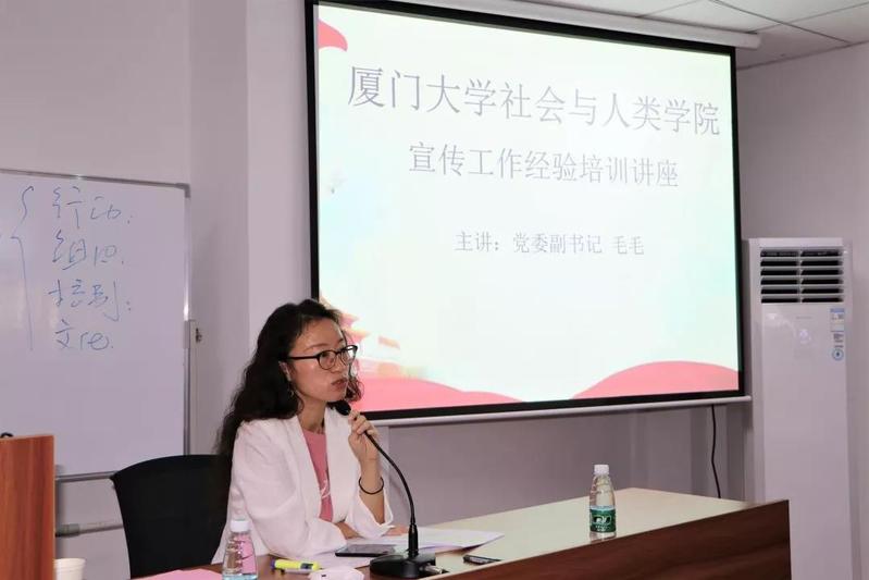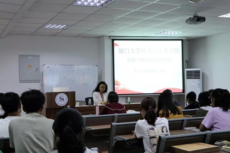 11月11日中午,由社会与人类学院党委副书记毛毛老师和团委书记石林伟老师主讲的厦门大学社会与人类学院宣传工作经验培训讲座在曾呈奎楼B栋205室举行,学院采编部、摄影部、美工部、网络部的学生干部和干事,各班级的宣传委员积极参与、认真聆听、做好笔记并从中收获良多。