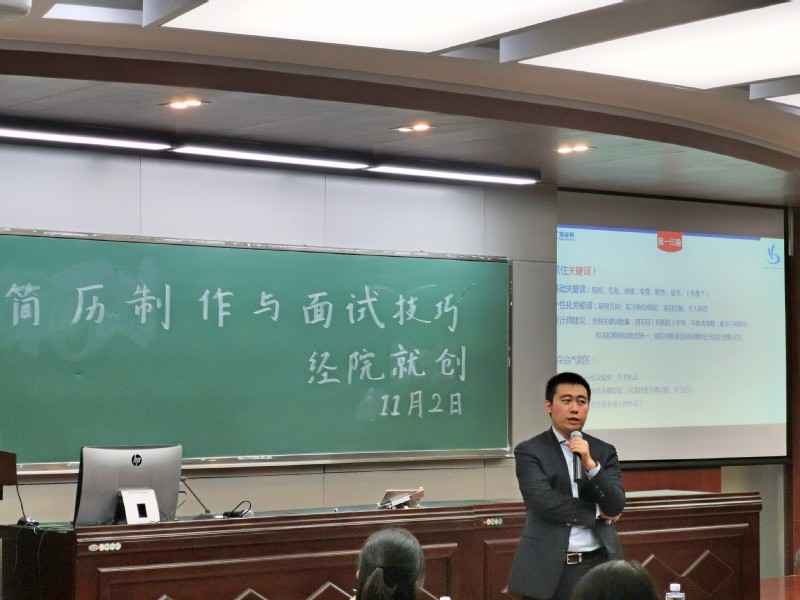 11月2日晚七点半,由经济学院就业创业指导中心举办的“简历制作与面试技巧”活动在经济学院N302如期举行。活动邀请到广发证券和中国太平洋财务保险的资深HR分享简历制作与面试的相关经验技巧,旨在加深同学们对简历制作与面试的理解,帮助同学们为今后的求职积累经验,提高未来的求职竞争力,助力求职道路。