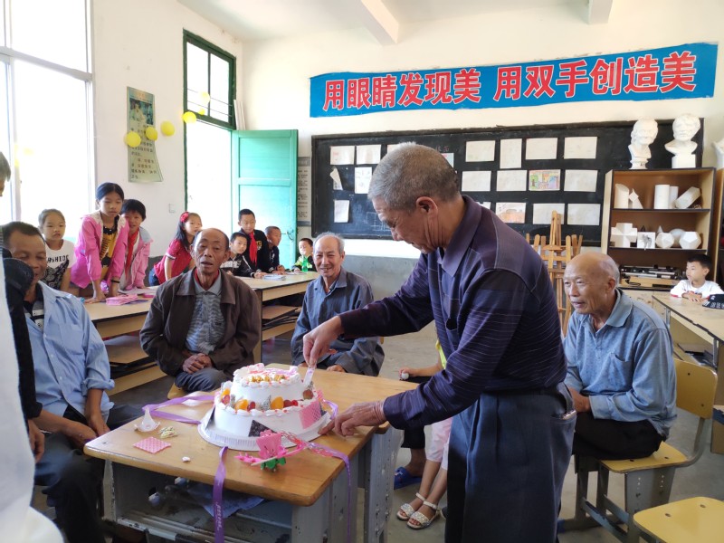 22日上午,村里十位与共和国同龄的爷爷奶奶应邀来到学校,支教队员和伯湖小学的孩子们一起,为他们庆祝生日。用气球装饰教室、为爷爷奶奶们唱生日歌、听他们讲述曾经的故事,爷爷奶奶们脸上洋溢着欣慰的笑容。老人们第一次吃生日蛋糕,依然习惯地分给孩子们吃,一位老奶奶最后吃了一小块,说:“真好吃,怪不得孩子爱吃”。值此中华传统的重阳节到来之际,孩子们在这一课上深刻感受到了爷爷奶奶的关心疼爱,纷纷表示要孝敬老人,帮爷爷奶奶们干活、给他们按摩、给他们洗脚、听他们的话、陪他们聊天,这些都是孩子们对爷爷奶奶实实在在的爱,真诚恳切、朴实无华。