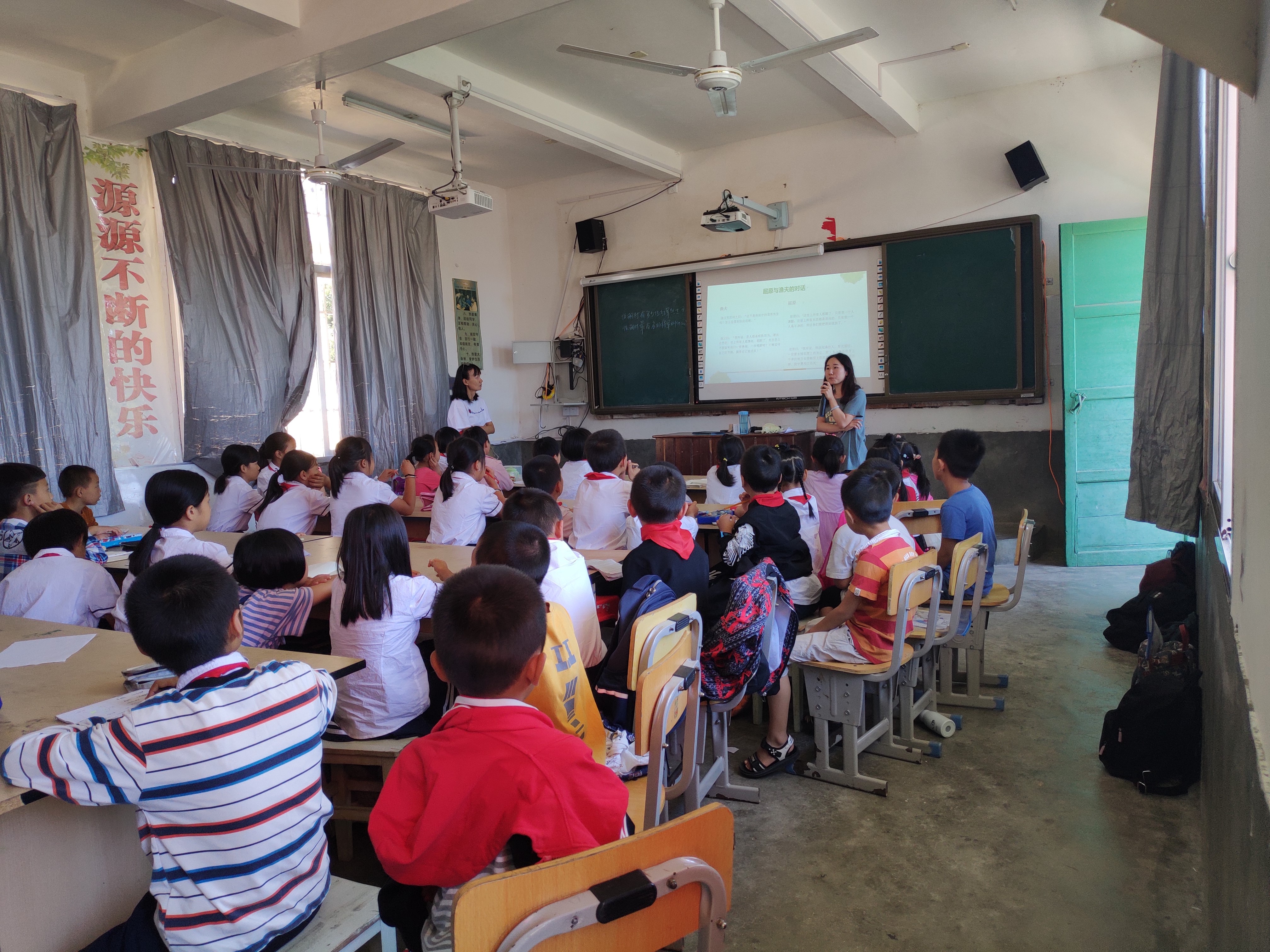 上午8点,支教队员准时来到伯湖小学的教室为孩子们上课,而同学们早的已穿好校服,系好红领巾,整齐的坐在教室里等待“小老师”了。课程开始了,支教队员给学生们讲述了国旗、国歌和国徽的来历,让同学们了解国旗、国歌、国徽背后的故事。然后讲解了国庆节的来历以及各个地方庆祝国庆节的方式,课堂中还播放了关于老一辈如何报效祖国的视频。在问及同学们将来的梦想时,在座的同学们纷纷举手回答,有的想当军人,有的想当警察,有的想当科学家等等,小小年纪都希望在未来能够为国家作出自己的贡献。为让伯湖小学的同学们对爱国精神有进一步的认识,支教队员还分别介绍了历史上三位爱国诗人——屈原、文天祥、闻一多的事迹,大家还一起朗诵了文天祥的《过零丁洋》。