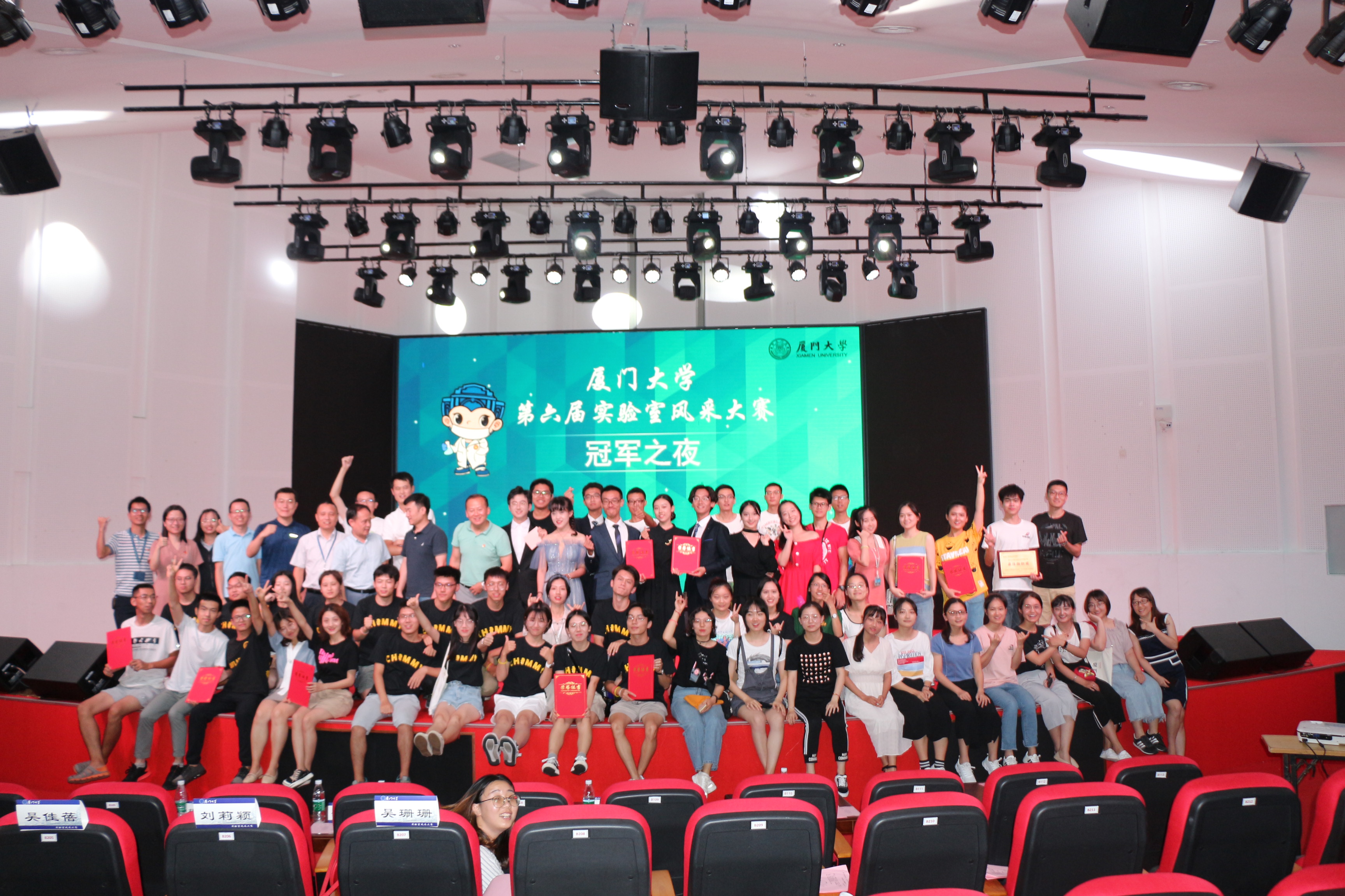 7月17日晚,翔安校区学生活动中心B207多功能厅流光溢彩、笑语欢歌,经过风采海报展、实验技能比拼、实验室安全科普游园会前三个环节和本次特色展示&才艺表演共四个环节的激烈角逐,我院“医心为公”代表队凭借精心筹划和出色发挥最终取得总分第一的优异成绩,顺利夺冠。