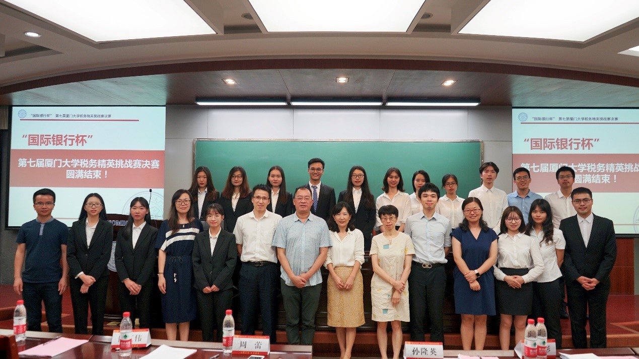 6月21日晚,“国际银行杯”第七届厦门大学税务精英挑战赛决赛暨颁奖仪式在经济楼N302举行。受邀担任决赛评委的有厦门市税务局国际税收管理处调研员孙隆英、厦门市税务局税收经济分析处调研员陈红伟、德勤深圳(厦门)分所税务与商务咨询总监乔彬彬、毕马威企业咨询(中国)有限公司税务经理毛士钦、象屿集团税务经理翁溪湖。经济学院党委副书记周蕾,经济学院财政系熊巍老师等出席活动。