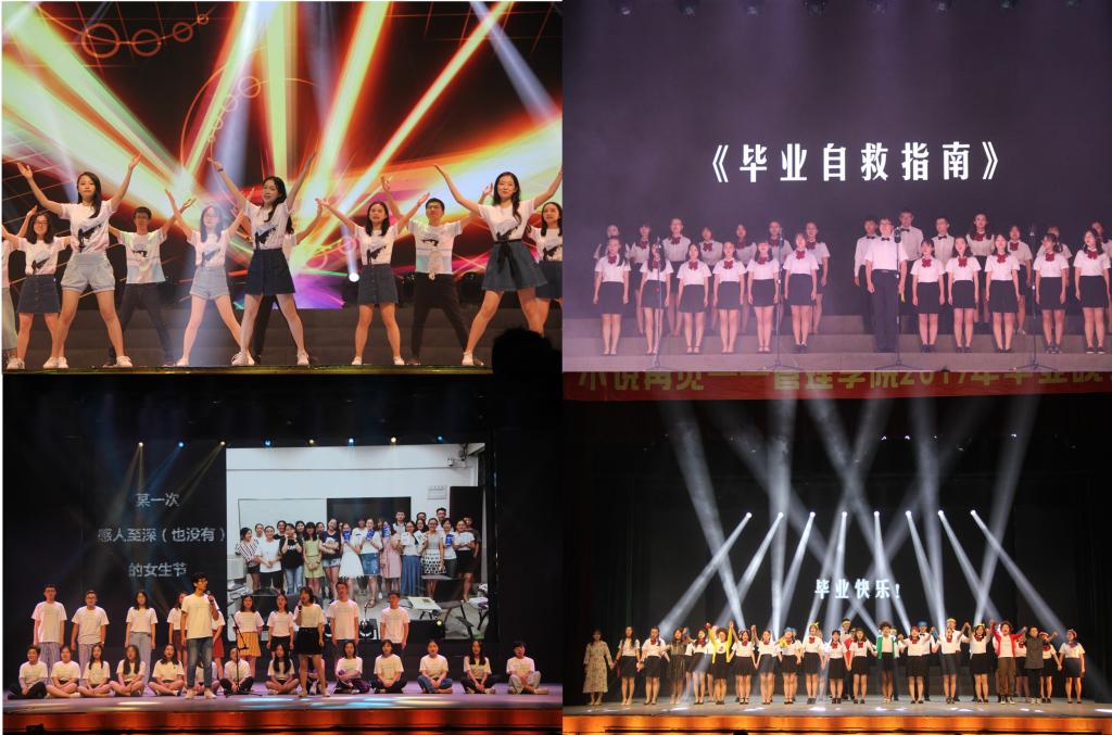 歌曲串烧《000》的三位表演者名字中都含有“ling”,合唱时和谐优美的歌声也同样体现她们的默契;由管理科学、电子商务毕业班同学联手编排的大戏《八阿哥传奇》展现了“管院码农”面对编程bug时坚持不懈、勇于挑战的精神。