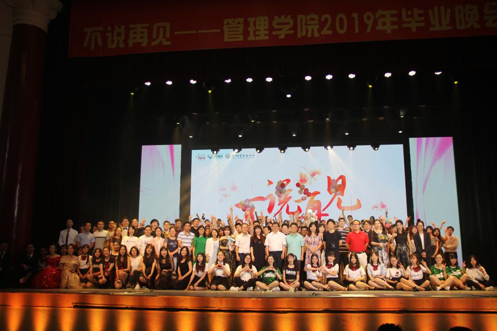 2019年6月17日晚,管理学院“不说再见”2019届毕业晚会在建南大会堂盛大开幕。本次晚会由2019届本科毕业生关芦东、蔡慧文、黄茗萱和硕士毕业生王思育担任主持人。厦门大学管理学院党委书记邱七星、党委副书记洪秋霞、党委副书记戴蓥、副院长于李胜和各系老师代表以及管理学院学生共同参加了本次晚会。