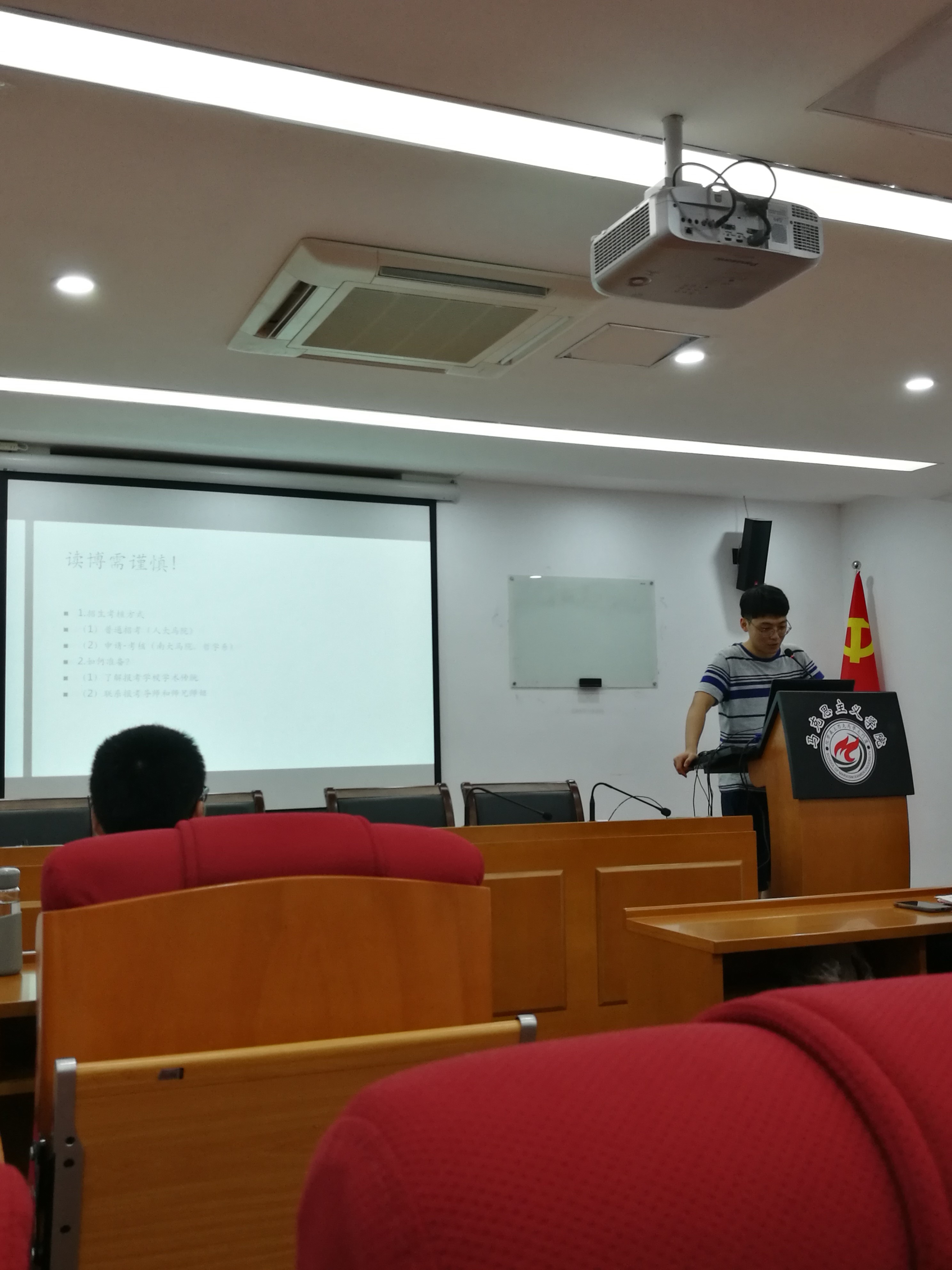 在经验分享环节,陈铮同学针对读博深造,结合自己的经验进行了介绍。他首先提醒同学们要慎重考虑自己的未来,要结合自己的实际做好读博计划或者职业规划。他介绍了博士招生的考核方式及相关的准备工作。随后,周嘉悦同学针对国企、事业单位的招聘结合自己的情况进行了分享。她强调要清晰自己的个人定位和未来规划,并指出求职需要保持平稳自信的心态和坚持不懈的努力。要从爱好、地域等多方面因素考虑职业选择,扩大和畅通自己对招聘信息的接收渠道。最后,陈媛媛同学主要针对教师这一职业介绍了适合我院学生的教师岗位、招聘信息渠道、教师必备证书、教师招聘和面试等相关环节。