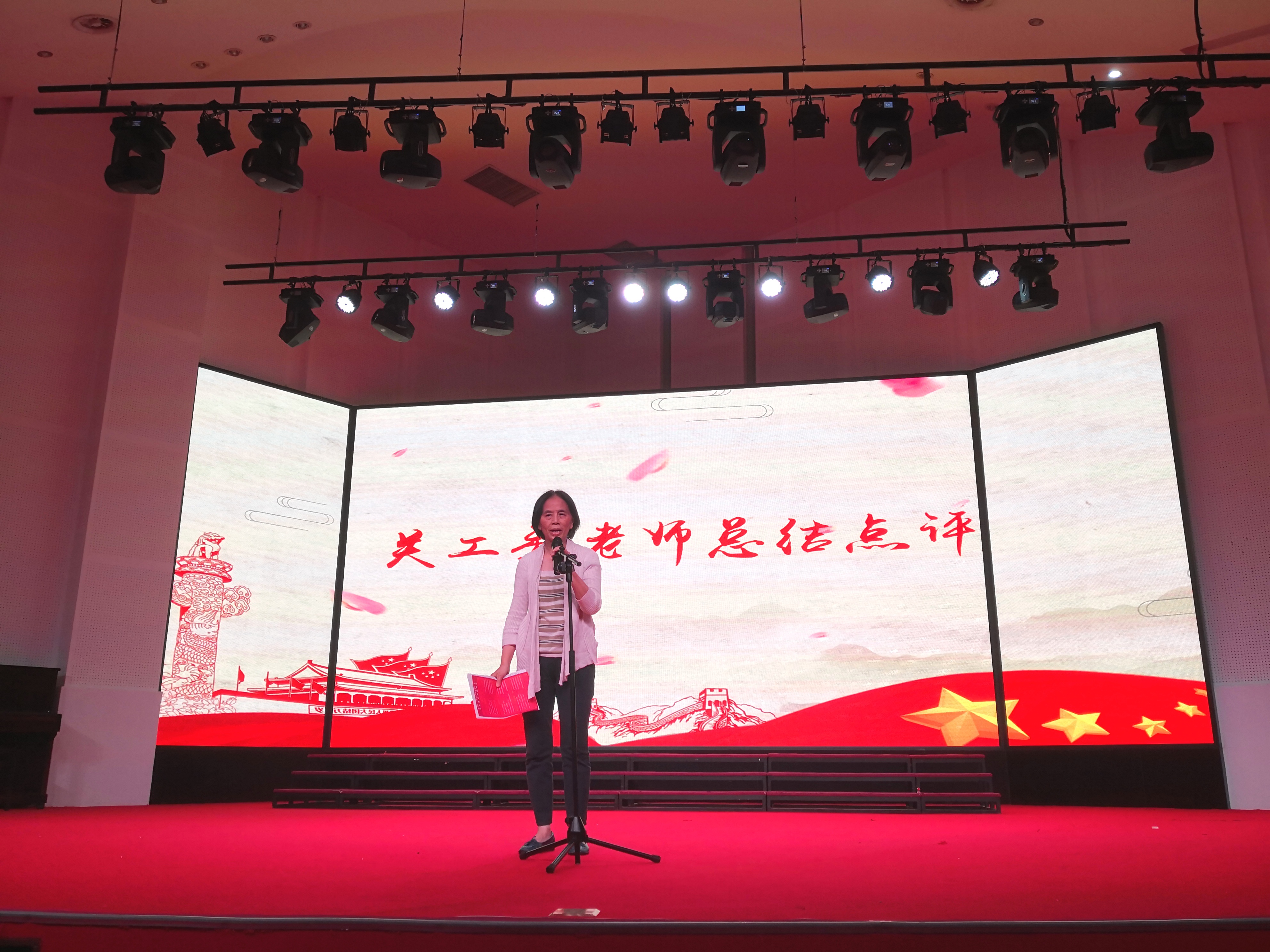 陈力文老师应邀对活动进行了总结点评。她说,在纪念五四运动100周年、迎接新中国成立70周年之际,药学院组织青年学生以毛主席诗词朗诵会的形式开展主题教育活动,说明了学院党委对学生思想政治工作的高度重视,新颖别致的活动形式让人眼前一亮,充满感染力。她对整场节目进行了逐一点评,还即兴朗诵了《浪淘沙·北戴河》等名篇,饱含激情的表演得到满堂喝彩。她鼓励参演同学们说,药学院虽然学生人数不多,但是每个学生的身上都蕴含着无穷的力量,所以才能呈现出如此高质量的演出,相信同学们今后的学习生活也会蒸蒸日上。