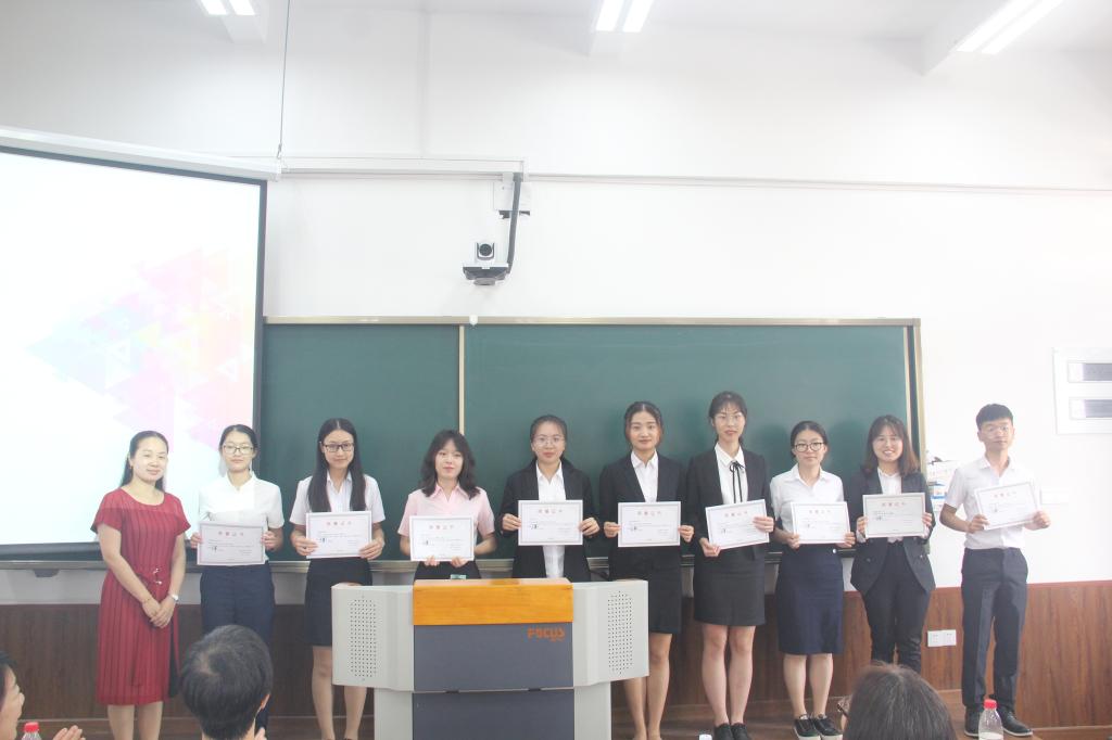 经过紧张的计分,一等奖由“清耳悦心”队、“致和紫光”队斩获。“大义凛然”队、“葫芦娃爷爷的宝贝农货”队、“Finance”队获得二等奖。“大橘已定”队、“不转锦鲤也开挂”队、“Prometheus”队、“易知易行”队、“辩形金刚”队、“予家”队、“云集众包”队、“X-style”队、“美学路5号”队、“楼宇零距离”队获得三等奖。同时,本次比赛设立单项奖,“清耳悦心”队获得最佳创新奖,“葫芦娃爷爷的宝贝农货”队、“致和紫光”队获得最佳创业奖。管理科学系副教授叶卫国、副教授傅馨为获得单项奖的队伍颁奖,管理学院团委副书记吴荣梅为获得三等奖的队伍颁奖,教育部高等学校电子商务类教学指导委员会副主任、管理科学系主任彭丽芳教授为获得二等奖的队伍颁奖,管理学院党委副书记洪秋霞为获得一等奖的队伍颁奖。
